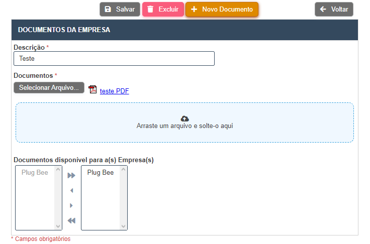 Documentos disponível para a(s) Empresa(s) – Quais CNPJ’s poderão visualizar esse documento.