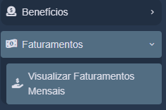 Link de Acesso na Lateral esquerda Faturamentos Visualizar Faturamentos Mensais